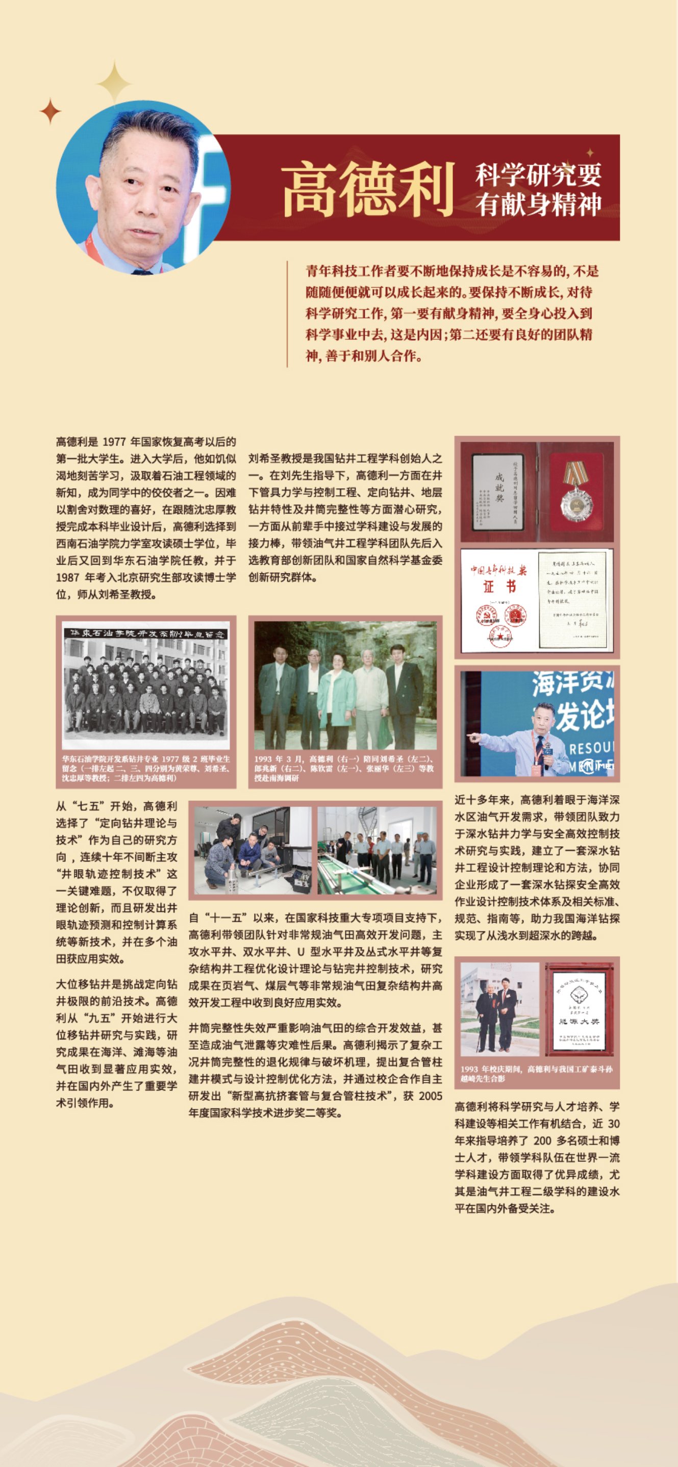 长期从事油气井工程科学研究与实践,带领团队瞄准钻井科技前沿,强化基础研究,在油气田钻采力学与控制工程、定向钻井、防斜打快、井筒完整性及工程作业极限等方面取得了系列重要研究成果,并在海洋和陆地油气田钻采工程中获显著应用实效。