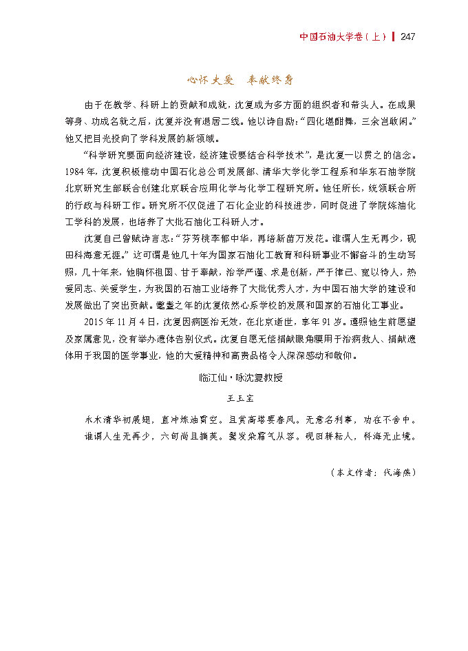 “芬芳桃李郁中华,再培新苗万发花。谁谓人生无再少,砚田科海意无涯。”