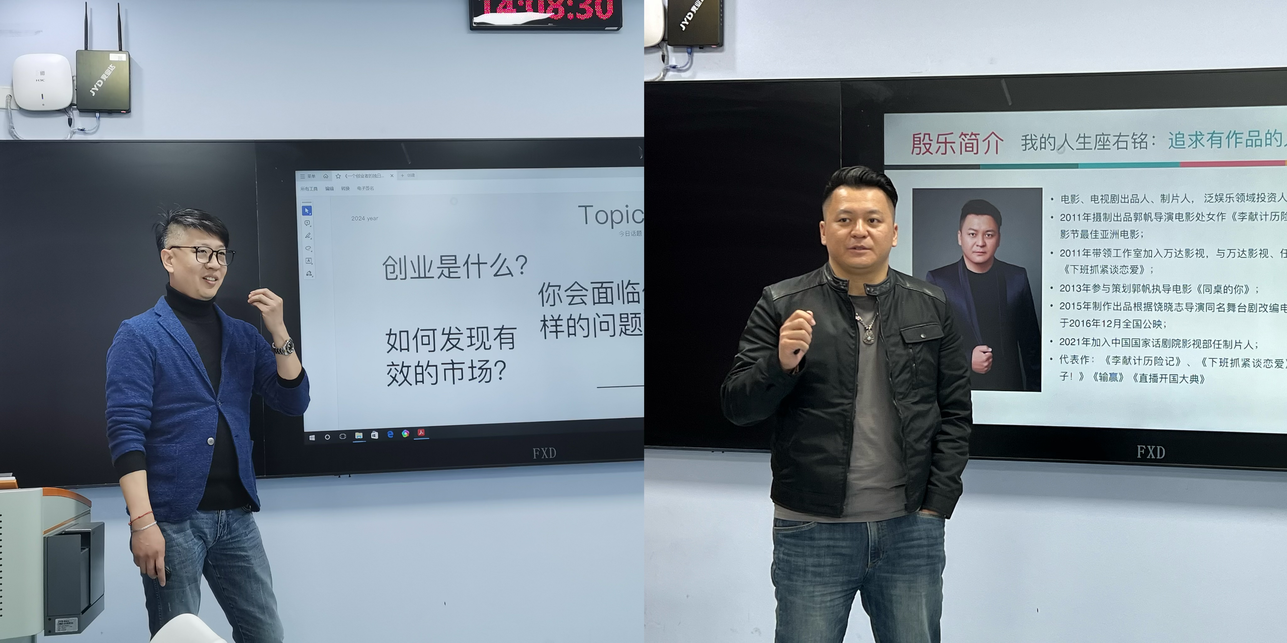本次活动邀请了两位校外企业家为学生讲述自身创业经历及相关技巧。密瞳实景娱乐负责人陈亮向现场师生分享了自身创业经历,如何在就业和创业中去寻找自我;他鼓励同学们要勇敢去做出自己的选择,在困境中要善于去发现有效市场,用毅力和经验打造自己的道路。泛娱乐领域投资导演殷乐向大家分享了他经历过的挫折和失败,如何去调整心态重新开始,并向大家传授如何利用爱好实现就业,在就业中分析市场,最终转化为创业。