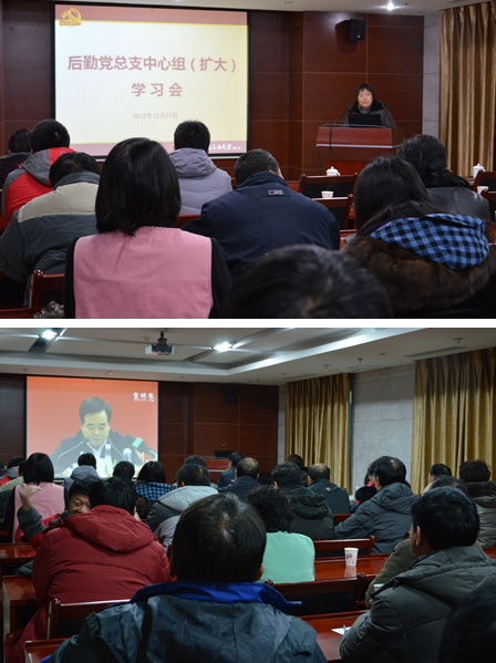 ,后勤党总支召开中心组(扩大)学习会,全体党员观看了十八大报告起草人欧阳淞同志解读党的十八大报告精神的视频资料。