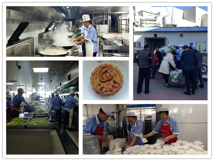 按照校庆工作的统一部署,餐饮服务公司负责提供校庆日当天的全校师生和返校校友的中午就餐保障工作,本着关爱师生、健康安全的原则,餐饮服务公司精心设计了校庆餐菜谱并广泛征求意见,对原材料采购贮存、餐具准备、食品操作流程、食品留样、秩序维持、卫生环境、人力调配等方面进行提前布置,校庆日当天凌晨2点餐饮服务公司全员上岗制作校庆餐,当天共提供校庆套餐13000余份,圆满完成了校友和在校师生的餐饮接待工作。适逢中秋佳节来临,餐饮服务公司还设计制作了七款校庆主题月饼,受到了师生的欢迎。