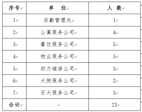 4、非在编人员为与石大服务公司签订劳动或劳务合同,在后勤工作两年以上并考核优秀,在近两年工作中严格遵守学校后勤服务规定,未出现违法违纪、安全责任事故。