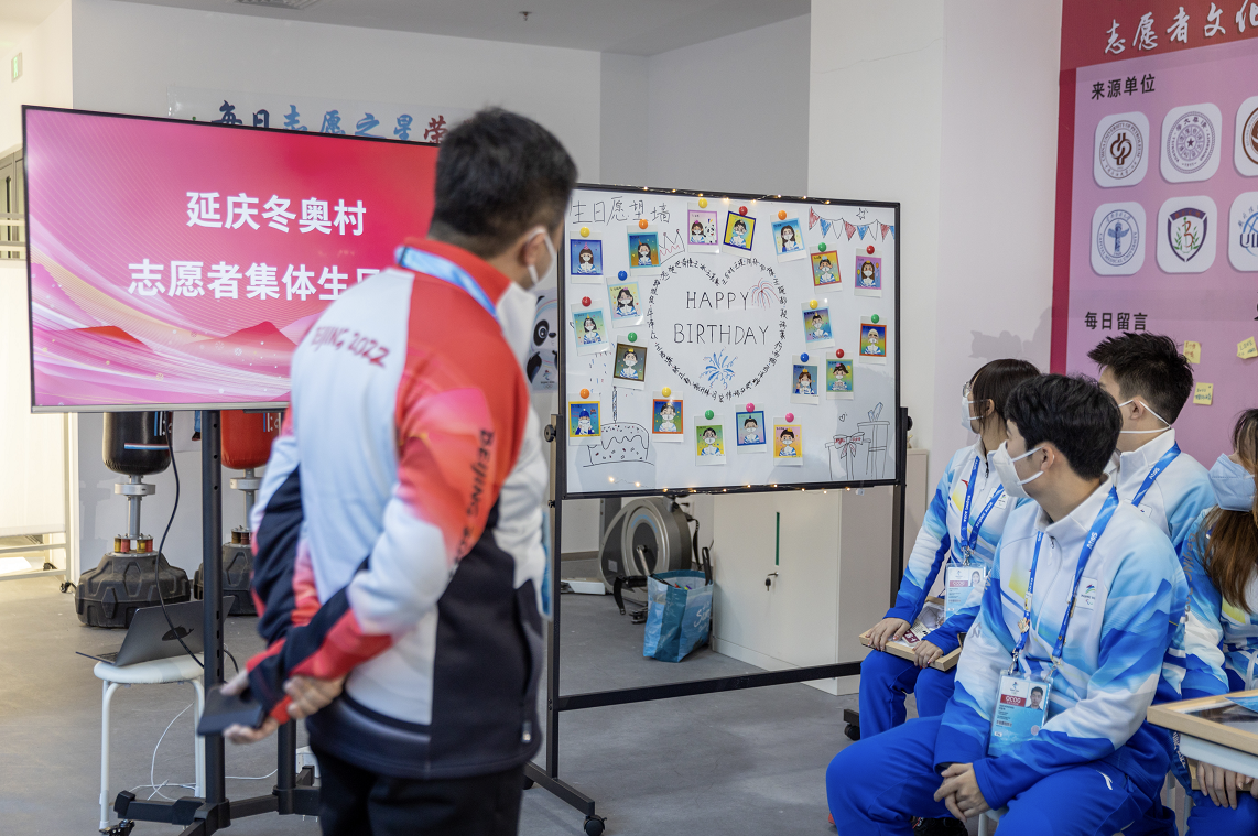 冰雪兆盛世,生辰逢吉时。在这个温馨的氛围中,延庆村场馆运行团队秘书长严晗也为寿星们献上了生日祝福,“恰逢冬奥,又赶上新年,让大家的生日更有意义。你们从’鸟巢一代’到‘平视世界的一代’,要做好传承,成为自信、阳光、开放的新一代,让志愿者的微笑成为冬奥会中更温暖的阳光。”严晗同时还提醒大家,在工作岗位上特别要注意防疫安全。