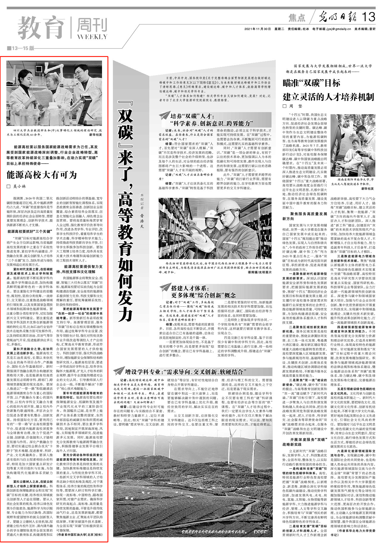 11月30日,《光明日报》以“能源高校大有可为”为题刊发校长吴小林署名文章。全文如下: