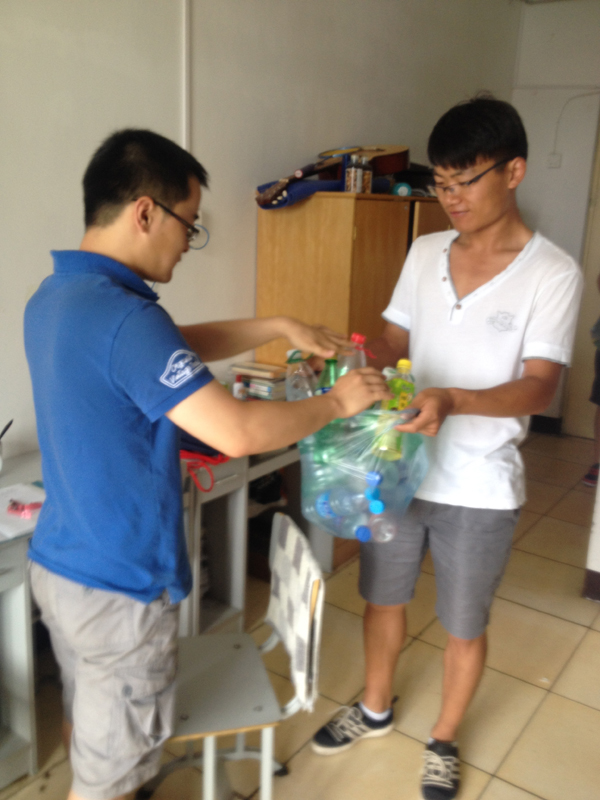 为响应学校开展党员先锋模范工程的号召,深入学习贯彻党的十八大精神,在学生中开展群众路线教育活动,充分发挥学生党组织和广大学生党员的战斗堡垒作用,实现建设石油石化学科领域世界一流研究型大学的石大梦提供坚强保证,6月12日,石大地球科学学院研2012-3党支部在能源公寓开展“环卫先锋”活动,党支部共走访近20个宿舍,收集饮料瓶总计200多个。