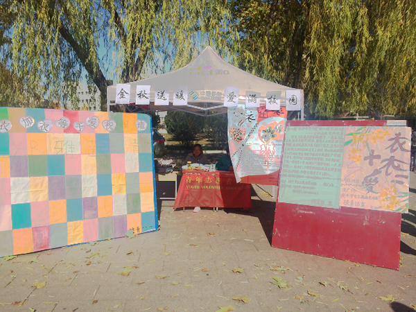 11月13日,石大青年志愿者协会在北校区南广场和润杰公寓东门举办第二届“衣加衣等于爱”爱心捐衣活动,活动持续两天,共募集到衣服23包。