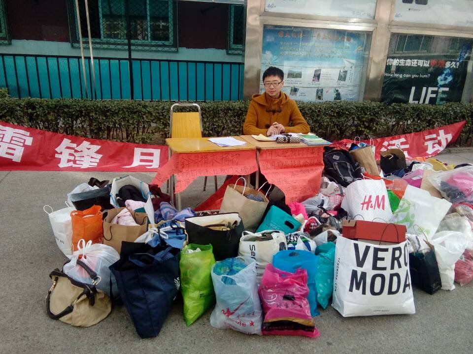 近日,石大校青协在石大南广场举办了为期两天的雷锋月爱心捐衣活动。