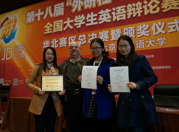 4月10日至12日,第十八届“外研社·京东杯”全国大学生英语辩论赛华北地区决赛在北京举办,吸引了来自华北赛区的72所高校参赛,由石大外国语学院2011级本科生康唯佳和王玥组成的代表队在比赛中荣获一等奖,她们将代表石大参加5月份举行的全国总决赛,石大获得“最佳组织奖”。