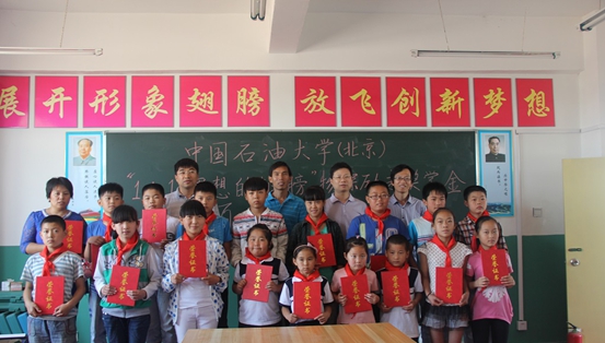 6月11日,中国天天色天天(北京)地球物理与信息工程学院物探系党支部驱车前往河北省大城县大阜村乡田庄小学,开展“1+1理想的翅膀”长效助学系列活动。本次活动以物探系支部党员捐助形成“物探励志奖学金”,为大城县4所小学中成绩优秀、表现突出的18位小学生颁发奖学金。
