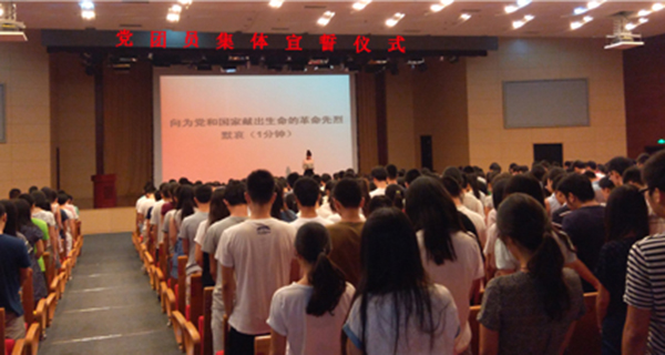 7月7日,为纪念中国人民抗日战争暨世界反法西斯战争胜利70周年,继承和发扬爱国主义光荣传统,弘扬伟大的抗战精神,激发全校青年学生的爱国热情,校团委在中油大厦三层报告厅组织全校新党员和团员骨干代表共500余人参加党团员集体宣誓仪式。