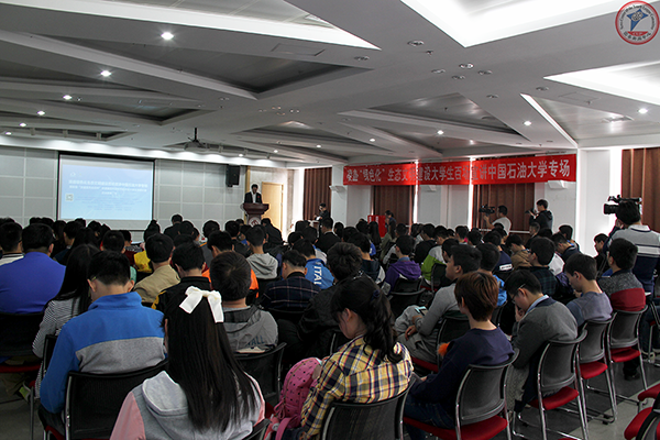 4月16日下午,凌盛“绿色化”生态文明建设大学生百场宣讲中国天天色天天专场暨首届“凌盛蓝天白云”杯京津冀百所高校节能环保大学生演讲大赛决赛第二场在石大学生活动中心410报告厅举行。中国青少年研究会副秘书长、演讲大赛导师黎陆昕,校党委副书记雷玉江出席活动,来自各学院近200名学生观摩了比赛并投票。