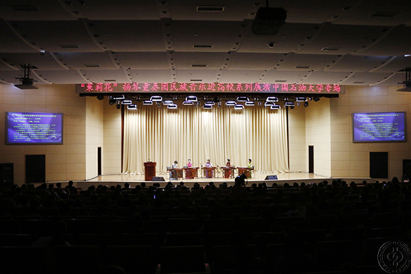 张来斌欢迎刘月宁和“茉莉花”扬琴重奏团做客石大,表示石大将坚持把“精品艺术进校园”作为加强校园文化建设,丰富师生文化生活,提高艺术人文素养的重要形式,助力师生全面发展。刘月宁介绍了近年来工作团队在国内外扬琴文化艺术交流和发展方面所作的努力。“茉莉花”扬琴重奏团成员米炫晔详细介绍了扬琴的起源与各流派差异,并引导观众欣赏了各派扬琴古香古色、刚柔并济的优美音色。在互动提问环节中,重奏团成员对扬琴未来发展、演奏方式、国内外地域差异等问题进行了解答。