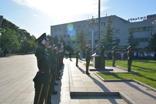 清晨,国旗仪仗队穿戴整齐,迎着朝阳,伴随着旗手一声嘹亮的长口令,队员们精神抖擞,踏着坚实的步伐,分列式行进护送国旗。伴着庄严的国歌声,师生们注目着鲜艳夺目的五星国旗冉冉升起。礼毕后青年代表进行了“激扬青春志,筑梦十三五”主题发言,表示作为当代大学生应当铭记历史,不断提高自己的思想觉悟,坚定共产主义信仰,用青春活力和满腔热血,努力学习,开拓创新,为实现中华民族伟大复兴的中国梦而努力奋斗。