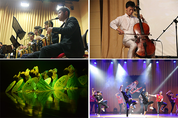 在街舞团·合唱团专场中,合唱团用阿卡贝拉的演绎形式表演了《海阔天空》和《夜空中最亮的星》;街舞团展示了Jazz、Poppin、Hiphop、Locking和Breaking五种类型的街舞表演。在民乐·金话筒团专场中,民乐团演奏了《光明行》《花好月圆》等传统器乐合奏,以及由团员们自己编排的《凉凉》《大鱼》《Let it go》等现代风格的乐曲;金话筒团带来了精心准备的《玉叶冠》《闪耀吧青春的火光》《雷雨》等节目。在“瞬舞倾城”舞蹈团专场中,舞蹈团带来了《花儿为什么这样红》《轻青草原》等民族舞展示,并用现代舞的形式演绎了《那个世界那个我》《时间都去哪了》《花开时节》等节目。在“电影时光机”的专场演出中,管乐团演奏了经典电影主题曲《美女与野兽》《千与千寻》《指环王》,弦乐团带来了《泰坦尼克号》《肖斯塔科维奇第二圆舞曲》《The Pirates of Caribbean》等经典曲目。在艺术展演闭幕式暨话剧专场演出中,话剧团表演了精心准备的经典话剧《青蛇》。各个专场上,环环相扣的剧情和演员精湛的演技,展现了石大学子优秀的舞台表现力。