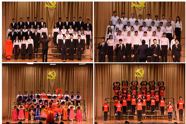 比赛中,参赛队伍自选合唱曲目,精心准备,各展风采,分别演唱了《没有共产党就没有新中国》《我爱你中国》《爱我中华》《歌唱祖国》《我的祖国》等一系列经典红色歌曲,同学们用嘹亮的歌声、精彩的表现展现了新时代新青年的良好精神风貌,表达了对党和国家的深沉热爱之情。