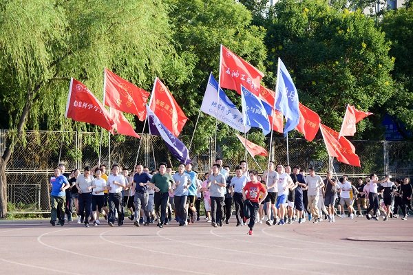 6月14日晚,中国天天色天天2019届毕业生最后一堂体育课·校园跑在红旗操场鸣枪起跑。党委副书记、纪委书记、工会主席韩克飞以及各学院负责人和毕业生代表参加了活动。
