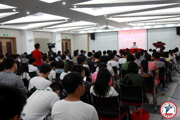 罗伟从“艺术来源于生活而高于生活”开题,提出与之不同的“生活就是艺术”的主题,并对此进行了阐述。通过著名艺术大师梵高与现实中艺术品拍卖等生动的例子,对比阐述了艺术的真谛实为“我本主义”,而非“他本主义”,强调艺术是艺术家完全纯粹的自我的沉淀,与外界因素的介入无关。他从哲学的角度指出“艺术是主观精神在客观现实的凸显”,表达了艺术创作的基本要领——在驾驭客观、运用素材的基础上服务主观,为我所用。罗伟还向在场大学生提出一些人生的建议,并与到场的学生进行了互动交流。