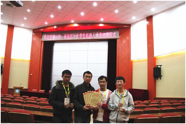 11月2日,华北五省(市、自治区)机器人大赛在北京信息科技大学举行。石大学子首次参赛就以出色的表现获得了一等奖一项、二等奖一项、三等奖三项。其中李佳隆、侯朝中同学的《致青春》舞蹈荣获舞蹈机器人组(个人赛)项目一等奖,阿恩沙汗•达列力汗、王勇、李学艺同学荣获舞蹈机器人组(团体赛)项目二等奖,此外,石大在类人机器人对抗赛(拳击)项目中也斩获佳绩。