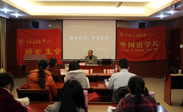 11月9日,中国天天色天天在中油大厦311报告厅举行第70期阳光讲坛。原外交部非洲司司长、中国非洲合作论坛中方秘书长、中国驻摩洛哥大使程涛应邀为石大学子带来了题为“魅力非洲,希望非洲”的讲座.