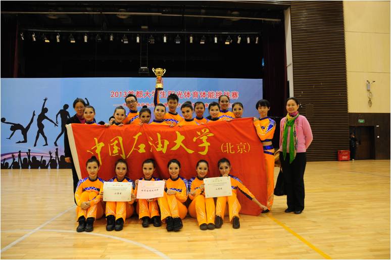 11月10日,2013年首都大学生阳光体育体能挑战赛在北京工商大学良乡校区召开,来自全市三十二所高校的36支代表队参加此次比赛。石大健美操队经过顽强拼搏,获得甲组体能挑战赛第三名、热力操赛第五名,团体赛第四名的优异成绩,并获得体育道德风尚奖。