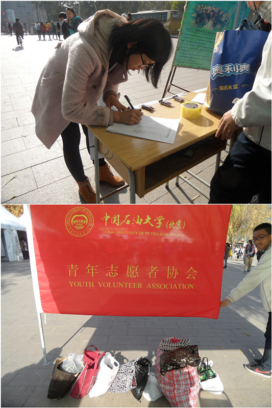 11月20日至21日,石大青年志愿者协会在润杰公寓和南广场举行了“衣加衣等于爱”爱心捐衣活动。