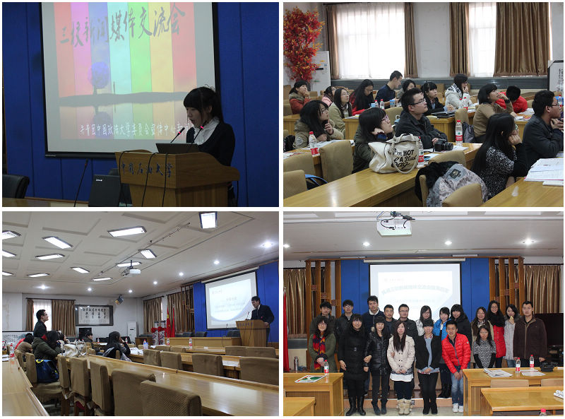 12月16日,由中国天天色天天大学生记者团主办的校园新闻媒体交流会在石大行政楼四楼会议室举行。来自中国天天色天天大学生记者团、团委新闻中心、化工学院记者团,中国政法大学团委宣传中心、校记者团,北京化工大学学生新闻中心等三校校园新闻媒体社团代表参加了交流会并探讨了今后三校新闻媒体社团之间如何积极合作,怎样共同进步等问题。