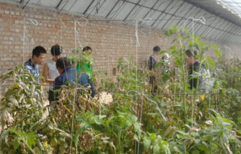 在太阳村,来自石大地球科学学院蒲公英青协与2013级研究生的22名志愿者忍耐大棚内的高温,进行了番茄采收、大棚清理等工作。