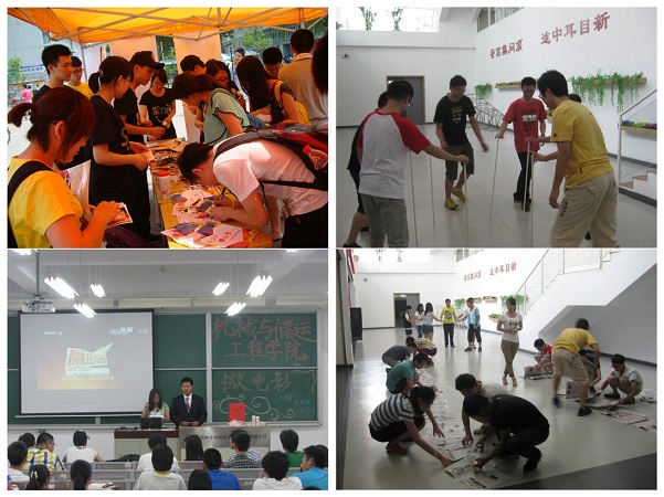 本次活动主要包括“电影健心”、“微电影健心”、“室外健心”三个部分。“电影健心”分别在三教108和111教室播放了《逆光飞翔》和《听说》两部电影,并设置了有奖问答环节。“微电影健心”在三教103教室播放了“亲情,友情,爱情,梦想”四大主题的微电影。在“室外健心”活动中,四支队伍在学生活动中心地下一层进行了无敌风火轮和齐眉棍两项游戏的比拼,最终储运2012-3班夺得冠军,机械2012卓越班获得亚军。