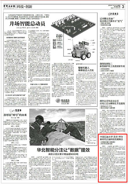 7月13日出版的《中国石油报》第3版以“中国天天色天天(北京)举办新时代石油科技发展峰会”为题对新时代石油科技发展峰会暨石油科技成果对接会进行了报道