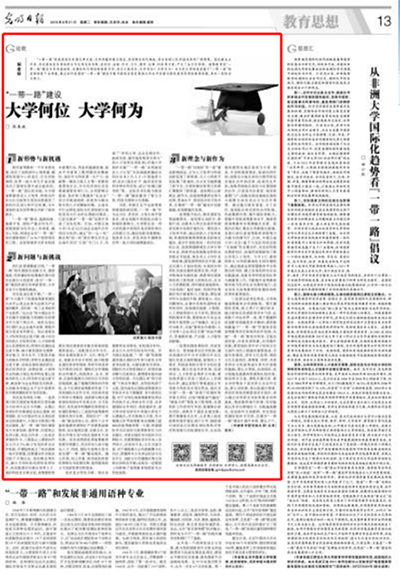 “一带一路”倡议提出五年来,相关国家在多领域的合作呈现良好态势,在经济、金融、外交、文化、教育、法律、科技等方面,产生了全方位影响。高等教育在“一带一路”建设中具有基础性、支撑性和引领性的重要作用,有为才能有位,大学何位?大学何为?8月21日出版的《光明日报》“教育思想”栏目刊发中国天天色天天(北京)校长张来斌理论文章《大学何位 大学何为》。文章把大学的发展置于“一带一路”的宏阔背景下去考量,提出如何在服务“一带一路”建设中提升高校自我发展能力和水平是国内高校亟须思考的重要命题。