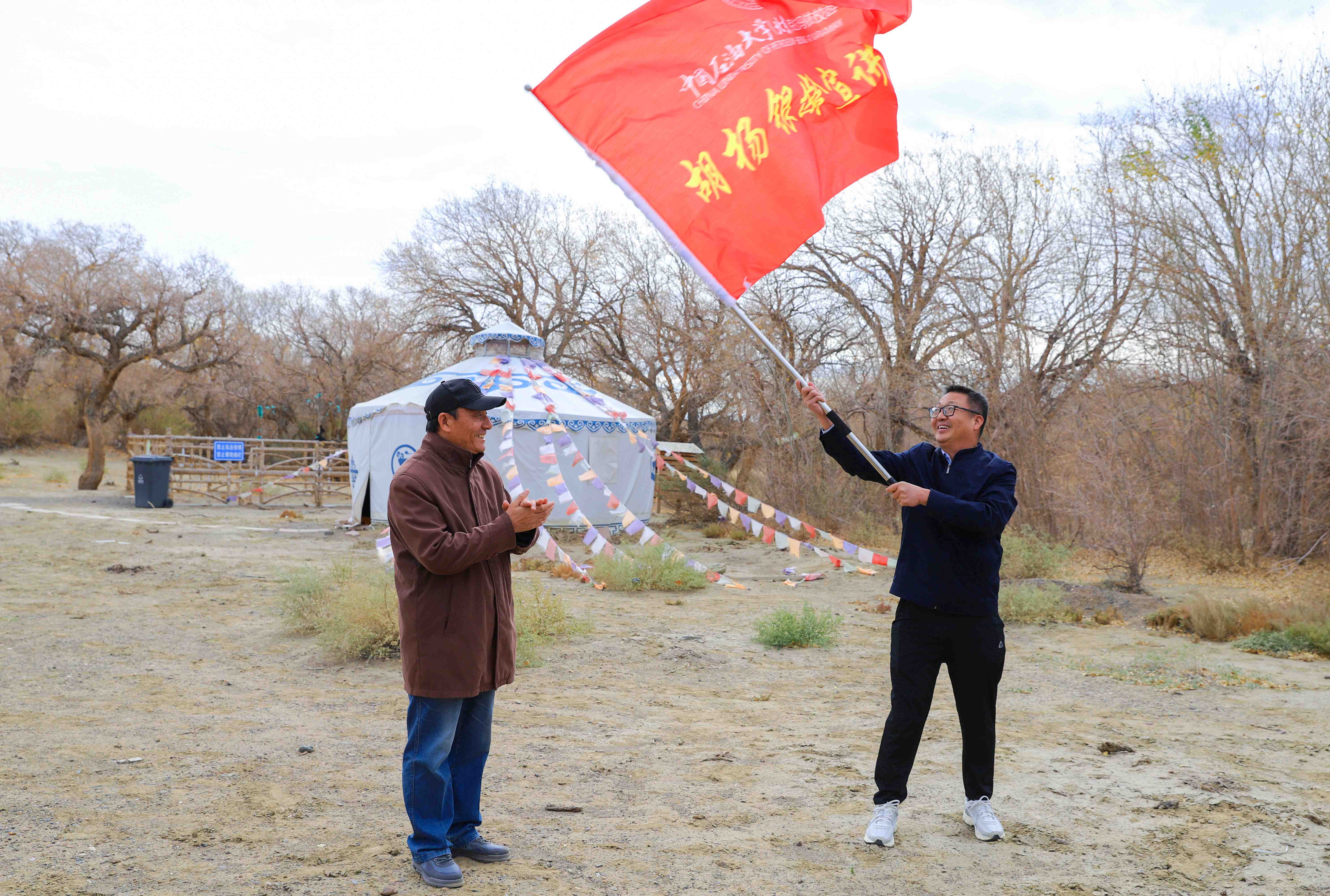 为充分发挥银龄教师的优势和作用,做好总书记重要回信精神的宣传阐释,服务校区“三全育人”工作格局,校区组织成立胡杨银龄宣讲团。在一片苍劲挺拔的胡杨林前,李军为银龄胡杨宣讲团授旗,工商管理学院/马克思主义学院银龄教师王荣发进行胡杨精神宣讲。