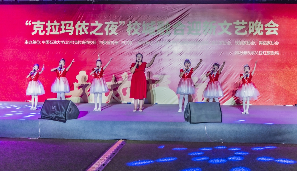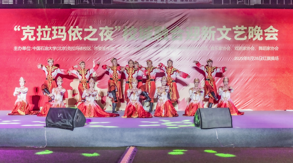 8月28日晚,“克拉玛依之夜”校城融合迎新文艺晚会在克拉玛依校区红旗操场举行,克拉玛依市民、大中小学师生及新生家长齐聚现场,共同感受石油之城的文艺魅力。晚会在管弦乐《我为祖国献石油》中开场,点燃气氛;中石大1998级校友刘文静一曲《如愿》致敬奋斗岁月,唱出家国情怀;《舞乐新疆》演员们身着舞裙,脚步轻快,将天山脚下的鲜活风情尽数展现;《我把新疆唱给你听》悠扬绵长,唱出新疆的辽阔与壮美;《我在天山南北等你来》歌声婉转,传递着新疆人民的好客与热情;师生合唱《万疆》大气磅礴;朗诵《诗词至风润油城》抑扬顿挫、诗韵悠长;穿山甲乐队《疆来》《蓝莲花》联唱将晚会推向高潮,用歌声与乐声传递了天山脚下的石油情、边疆韵。每个节目不仅是艺术的展示,更是克拉玛依精神与城市形象的诠释,呈现出一幅团结奋进、多姿多彩的新疆文化图景。