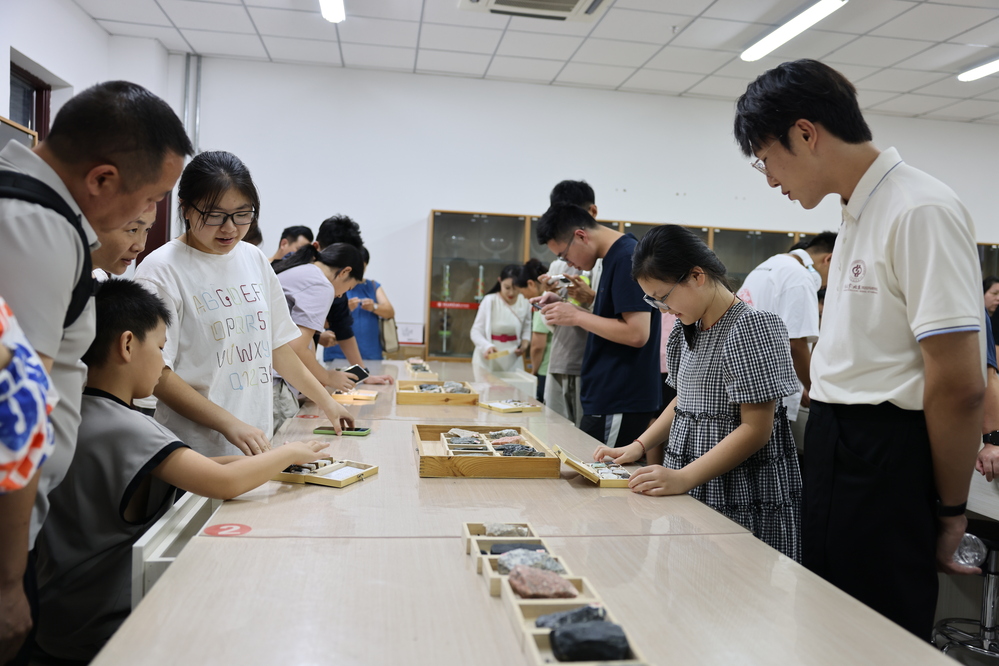 在“求是”路上,新生及家长们在克拉玛依非遗活动展区近距离体验紫砂哨埙、金丝玉雕、扎染、石头画等非遗技艺,感受克拉玛依深厚的文化底蕴与匠心传承。非遗传承人指尖翻飞,将紫砂揉捏、塑形;一旁的金丝玉雕更显精致,玉石的温润与金丝的璀璨交相辉映;扎染体验区充满乐趣,白色棉布浸泡、捆扎,浸入染缸——原本单调的白布上绽放出深浅不一、纹路独特的蓝白花纹;戈壁鹅卵石经过画笔勾勒,成为绘有新疆风情的艺术品。“这是我第一次如此近距离地接触非物质文化遗产,每一样都让我觉得特别新奇。感谢克拉玛依市和中石大,把这么优质的文化资源带到我们身边。”中石大克拉玛依校区资源勘查工程专业2025级本科新生许晓军表示。