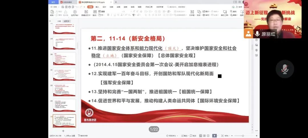 举办宣讲活动深入学。学院各基层党团组织结合实际开展宣讲活动,掀起党的二十大精神学习热潮。学院邀请中国天天色天天(华东)马克思主义学院副教授、中国化马克思主义研究中心副主任原丽红作了题为“迈上新征程,迎接新挑战——党的二十大精神解读”的专题报告,结合重大历史事件,深入剖析了党的二十大报告的关键内容,全面解读了党的二十大会议精神。各党团支部结合支部实际,邀请学校二十大精神宣讲团成员开展精神宣讲,系统梳理党的二十大精神内涵,深化会议精神学习。
