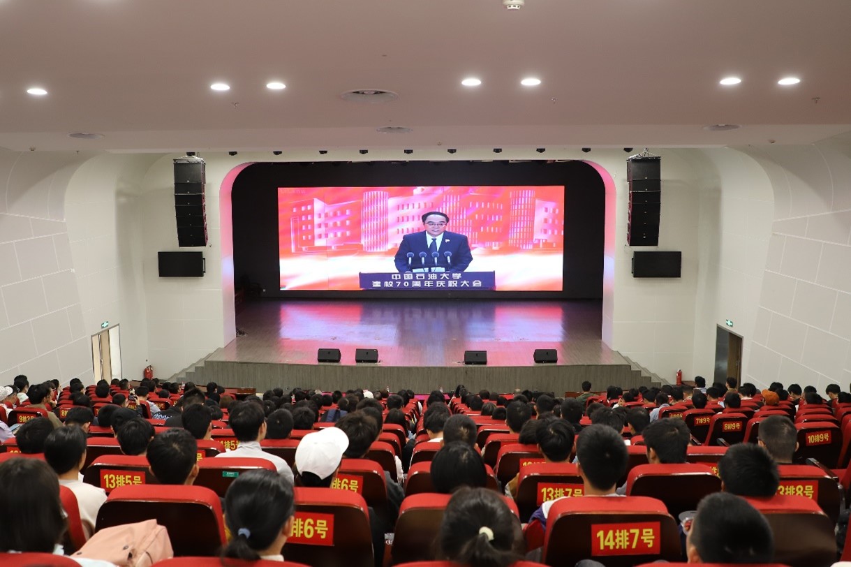 她深情回顾了学校70年的办学历程,指出学校熠熠生辉的历史长卷,每一页都记录着服务国家、追求卓越的铿锵步履,每一页都书写着我为祖国献石油的壮志豪情。70年来,学校在百业待兴的国家建设中坚韧求索,在改革开放的时代浪潮中锐意开拓,在新时代的伟大变革中守正创新。一代代中石大人在躬耕不辍中坚守立德树人初心,成就了“石油人才的摇篮”之美誉;在勇攀高峰中坚守科技报国理想,在石油石化工业发展和能源革命的每一个重要领域和关键技术中从未缺席;在顶天立地中坚守服务国家追求,在自觉肩负历史使命中实现了人生价值,为母校增光添彩。