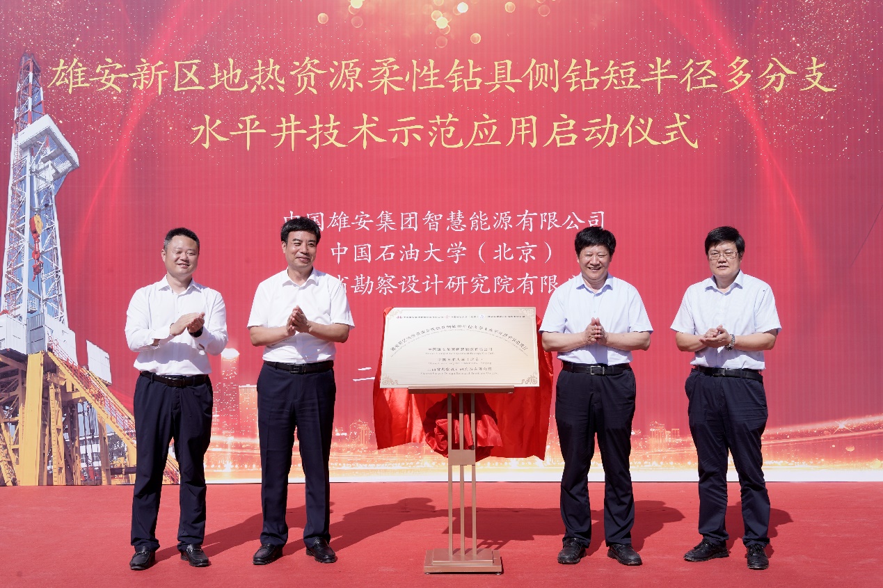 走访期间,刘植昌、李根生一行参观了雄安容西片区地热能开发现场,为联合实验室首个落地项目“雄安新区地热资源柔性钻具超短半径多分支水平井技术示范应用”进行揭牌,这是该技术在中深层地热领域首次应用。随后赴雄安新区东西轴线项目调度指挥中心、雄安启动区综合服务中心和联合实验室进行了走访。