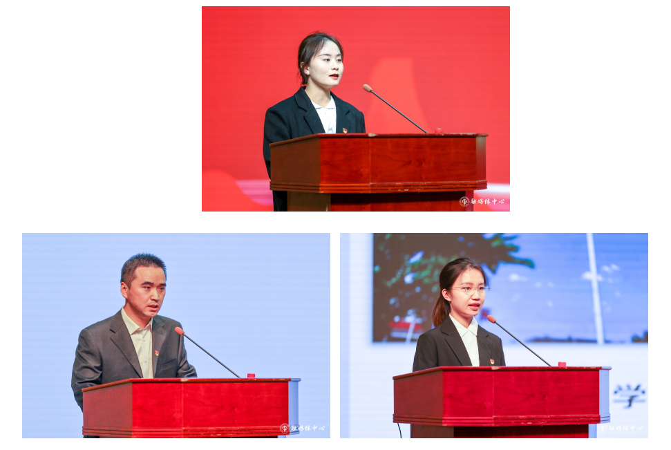 最佳硕士生奖学金获得者訾敬玉、党支部书记先进个人马梦琪、优秀本科班主任东晓虎作为获奖代表发言。