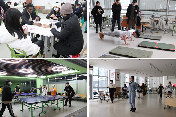 本次趣味运动会是寒假期间“十个一”留校学生主题教育系列活动之一,共分两场进行,项目包含男子俯卧撑、女子仰卧起坐、跳短绳、乒乓球、羽毛球、中国象棋、五子棋、围棋、益智类棋牌等十二项,给同学们创造了一次积极奋进、团结奋斗的实践机会,丰富了寒假期间校园文化生活,增进了留校学生之间的沟通和交流,同时让身处异乡的留学生切身感受中国师生的友谊与热情。