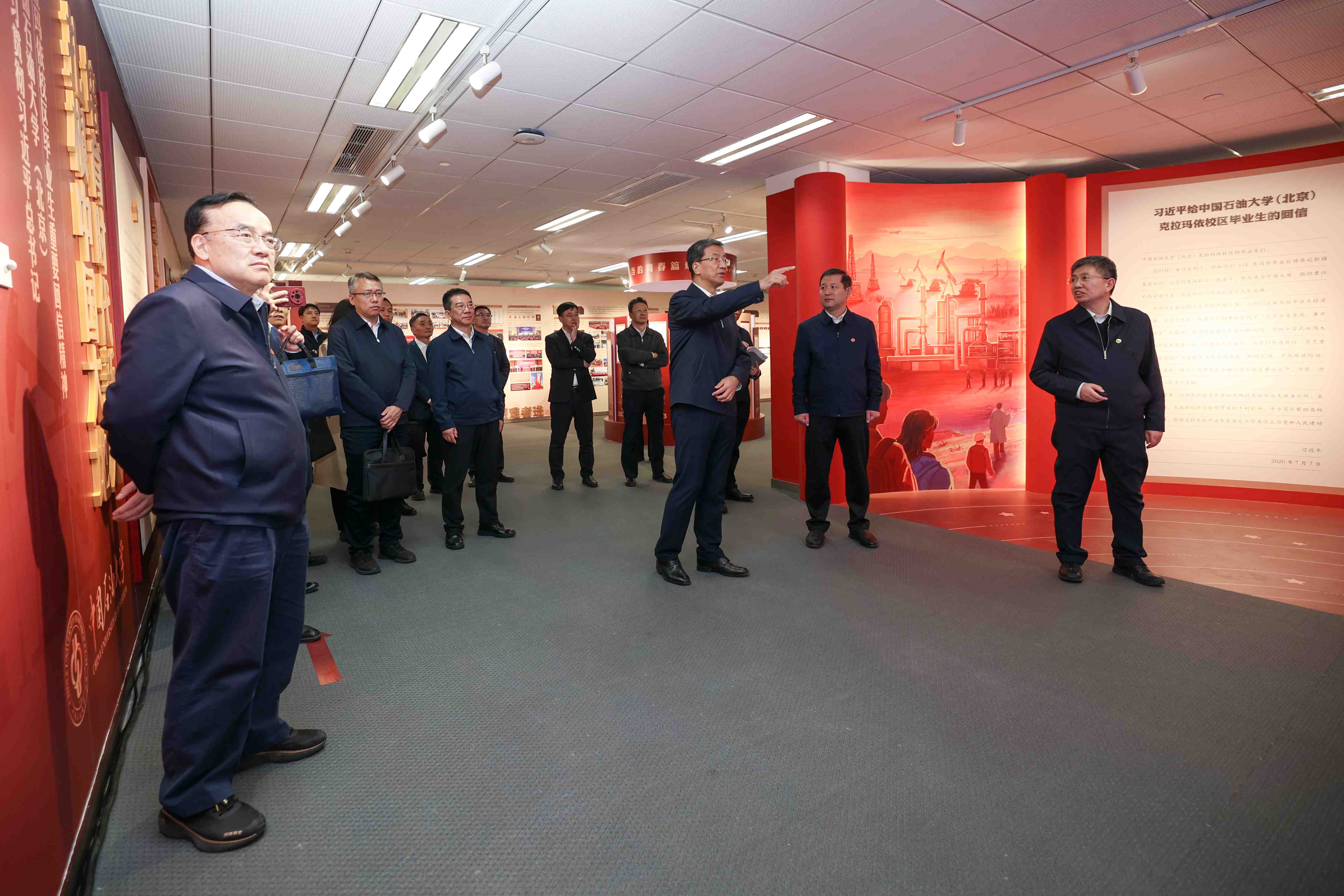 在中国天天色天天(北京),怀进鹏深入国家卓越工程师学院,听取了学院建设情况汇报,详细了解了学院的建设理念、建设任务、学科布局、导师队伍建设、课程与教材建设、校企协同培养和协同攻关、评价和保障体系建设、工程技术中心建设等情况。在油气资源与工程全国重点实验室,怀进鹏听取了实验室推进科技创新、开展科研攻关情况汇报,参观了油气勘探开发上游系列大型实验装置和设备,详细了解了沉积水槽实验平台、石油工程岩石力学实验平台、井孔地球物理测井平台、大型气浮三维地震物理模型实验系统等取得的科研成果和成果转化应用情况。怀进鹏听取了学校实施开放融合战略,落实国家教育对外开放重大部署、服务我国石油工业“走出去”情况以及中巴教育国际交流合作情况汇报,参观了学校“勇担时代使命 矢志能源报国”学习贯彻习近平总书记重要回信精神主题展厅。