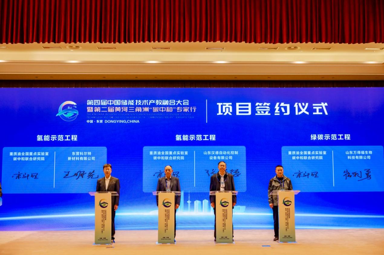 启动仪式上,徐春明院士发布了“绿电驱动新过程”科技示范工程专项,碳中和联合研究院分别与石大胜华、垦利石化等6家市内企业签约,联合实施绿电绿氢化工重大示范工程项目。