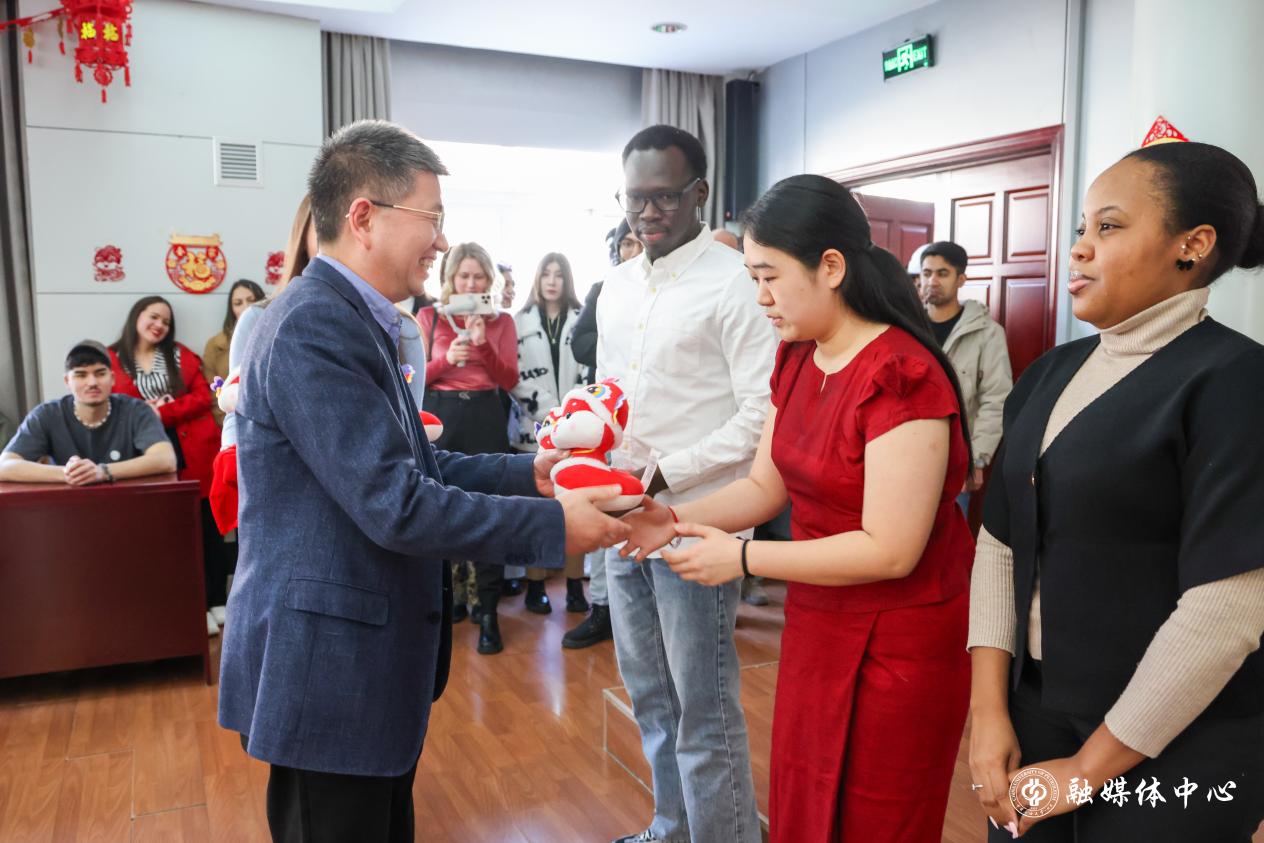 今年,学校还有来自哈萨克斯坦、土库曼斯坦、苏丹、厄瓜多尔等38个国家的500余名来华留学生留校度过寒假。为引导来华留学生深入感受中国春节文化,体会地道中国年味,学校组织开展了“巳巳如意 年年新禧”来华留学生新春联欢系列活动。金衍、刘植昌向来华留学生致以新春祝愿,同来华留学生互赠春节文化礼品,共同体验写福字、写春联、扎灯笼、包饺子等传统民俗项目。来自埃塞俄比亚的硕士研究生王美西表示,今年的春节因中国申遗成功而格外特别,虽身处异国他乡,但学校组织的春节活动让我们不仅收获了欢乐,更增进了对中国文化的理解和尊重。金衍表示,这是中国申遗成功的第一个春节,希望来华留学生能够积极参加丰富多彩的文化活动,以切身体验感受中国春节的温暖和中华优秀传统文化的独特魅力,成长为知华友华的友谊使者和合作桥梁。
