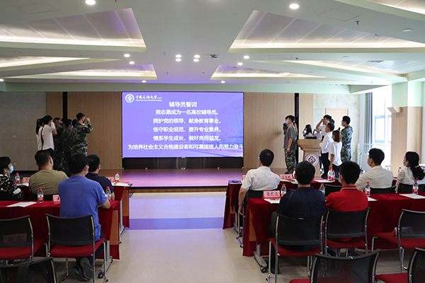 会上,安全与海洋工程学院团委书记方百会、外国语学院兼职辅导员刘思航作为资深辅导员代表作了发言,结合自身辅导员工作经历,从聚焦思想引领、加强学习思考、塑造个人品牌、持续专业成长等方面,阐析工作理念,介绍工作方法,分享工作心得。石油工程学院专职辅导员刘衡升、机械与储运工程学院兼职辅导员殷迪作为新入职辅导员代表发言,分享了选择从事辅导员工作的初心,讲述对辅导员工作的认识和理解,表示将努力成为一名政治过硬、业务扎实、用心用情、温暖学生的辅导员。新入职的25名2022级辅导员进行了宣誓,表达牢记“为党育人、为国育才”初心使命,奉献教育事业,情系学生成长,培养社会主义合格建设者和可靠接班人的坚定决心。
