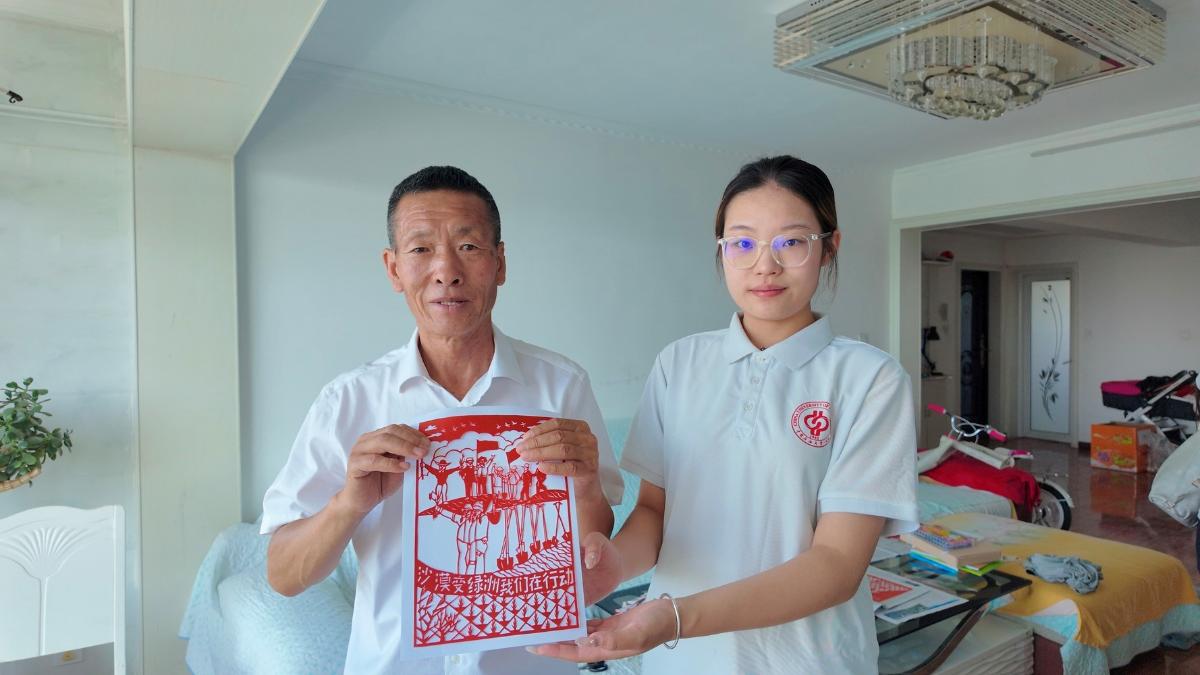 “剪纸不仅是手艺,更是民勤人记录生活、传递智慧的文化密码。”在民勤县,市级剪纸代表性传承人甘正业讲解了民勤剪纸“以剪代笔、以纸传情”的艺术特色,指导成员创作“麦草方格”“梭梭苗”等主题作品。一张张红纸经过折叠、剪刻,化作栩栩如生的治沙图景。实践团策划线上线下宣传活动,通过走访民勤敬老院、发布微信推送等方式,让剪纸艺术成为传播生态理念的新载体。