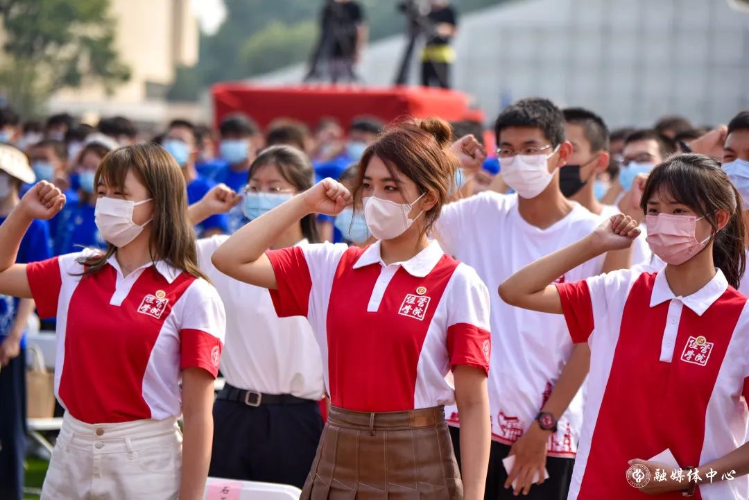 在安全与海洋工程学院本科生修智远的领誓下,全体新生举起右拳、庄严宣誓,“谨记中石大校训,厚积薄发,开物成务……志不求易,事不避难,努力成为可堪大用、能担重任的时代新人!”铿锵有力的誓言奏响新一代中石大人爱党报国的青春旋律。