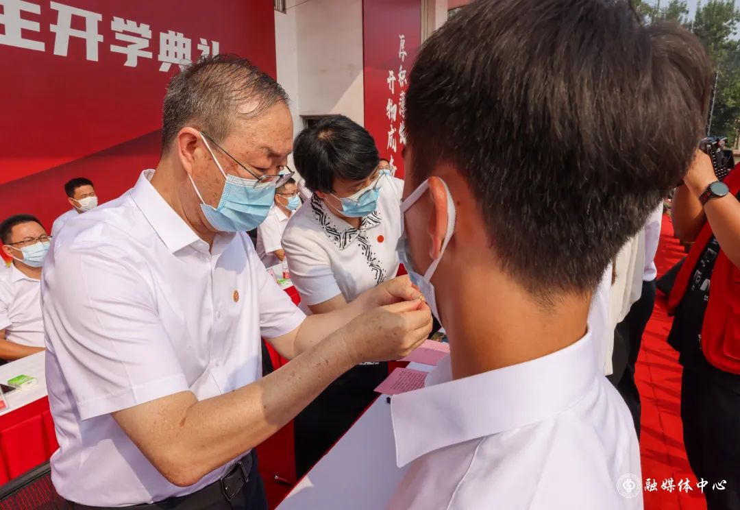 校徽是中石大的标志和象征,凝聚着学校的办学特色、文化传承和大学精神,承载着中石大人的家国情怀和光荣使命。现场参会的嘉宾及全体校领导为新生代表佩戴校徽,寄托着对新中石大人的特别期许。