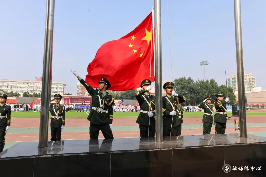 上午9:30,在嘹亮而庄严的国歌声中,五星红旗冉冉升起,开学典礼正式开始。