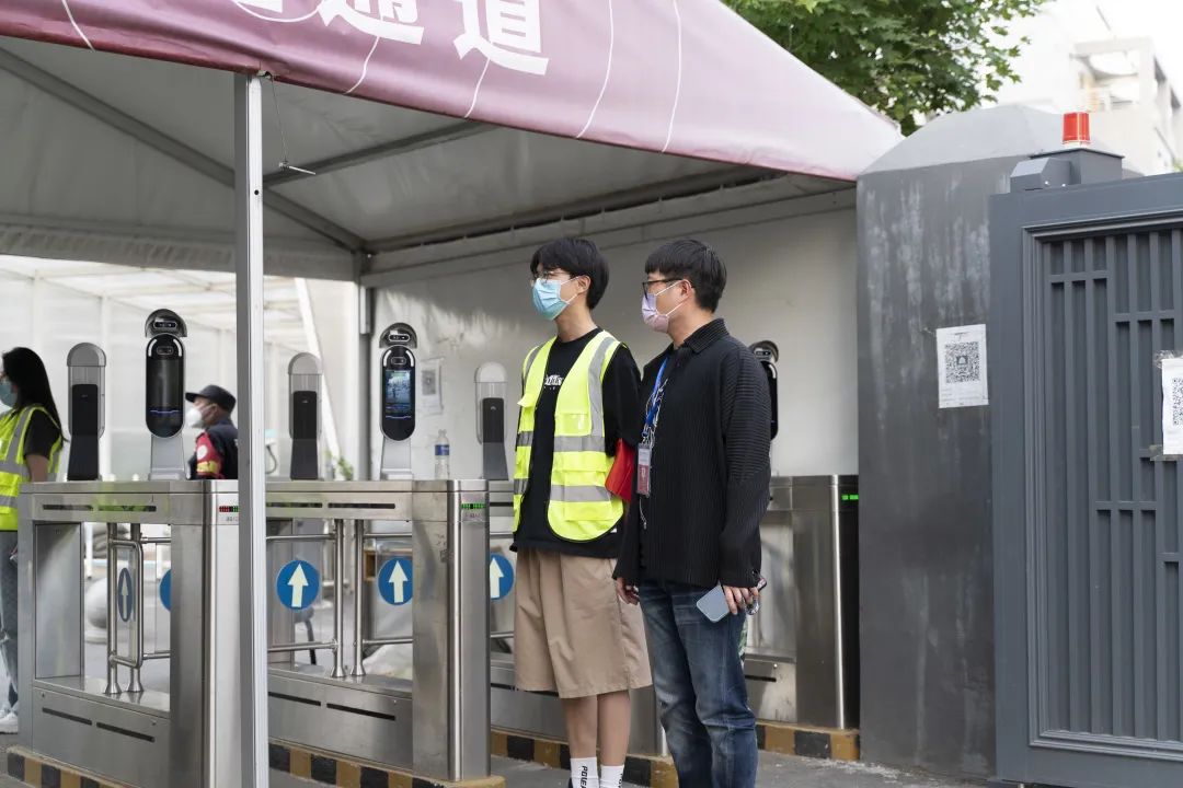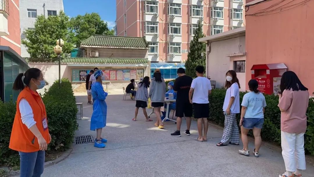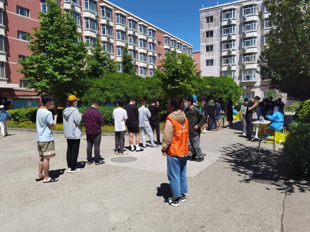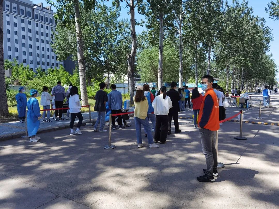 图书馆、校属企业管理办公室的教职工志愿者人手少,为了尽可能减少进校教职工人数,他们主动承包一个点位值班一天的核酸检测秩序维护工作。