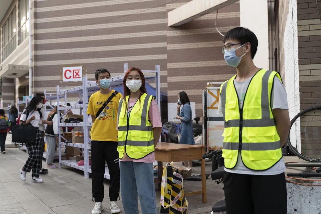 基建处王成和国有资产管理处王静娴赶上了5月12日中午学校首次开展的润杰公寓到南北校园的双向转运工作,完成任务后,当看到晚上润杰公寓快递点维持秩序人手紧张时,他们继续“战斗”,一干又是好几个小时。