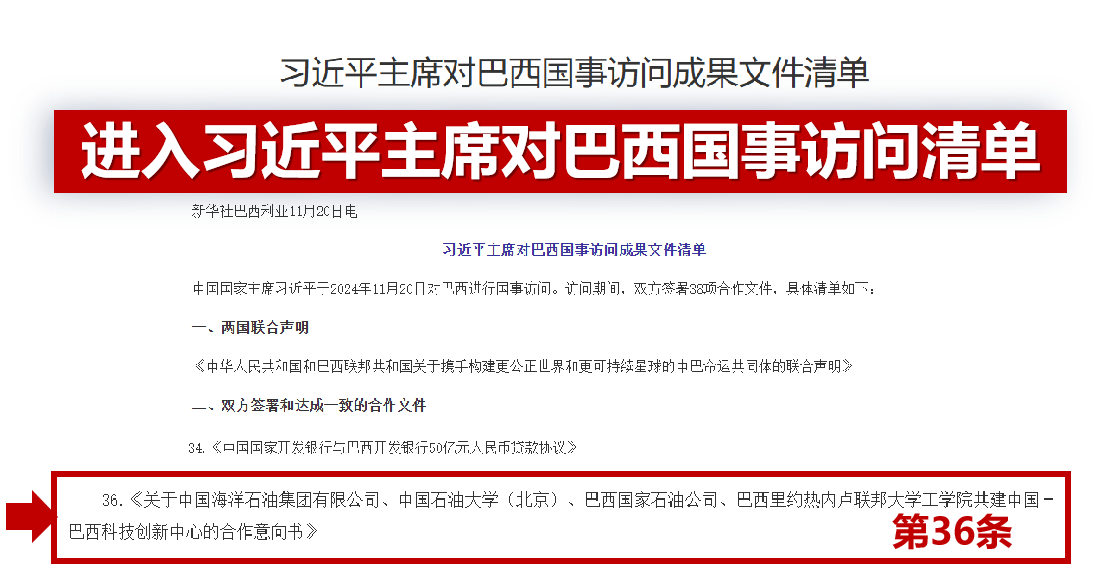 服务高等教育“出海”,发起成立世界能源大学联盟,当选“一带一路”能源合作伙伴关系合作网络高校(青年)工作组组长单位,成为全球能源教育合作的积极引领者。联合共建中国—巴西科技创新中心项目纳入习近平主席对巴西国事访问成果清单;在巴西揭牌建立我国首个海外卓越工程师学院。主导的“一带一路”能源领域大学、企业共建合作协议,被纳入哈萨克斯坦总统访华成果清单。