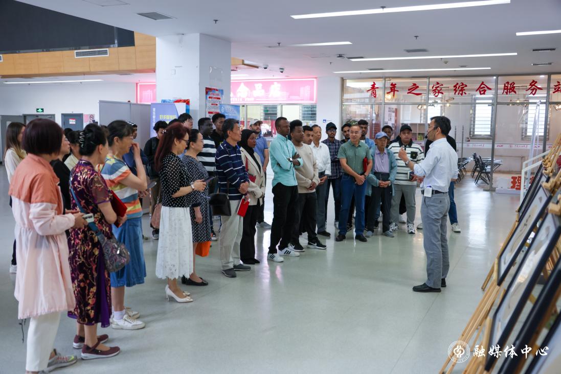 仪式结束后,师生共同学习来华留学生国情教育的第一课——参观刘冯瑜“龙传雅韵·翰墨润心”书法作品展,一同在书法艺术中感受中华文化的博大精深。